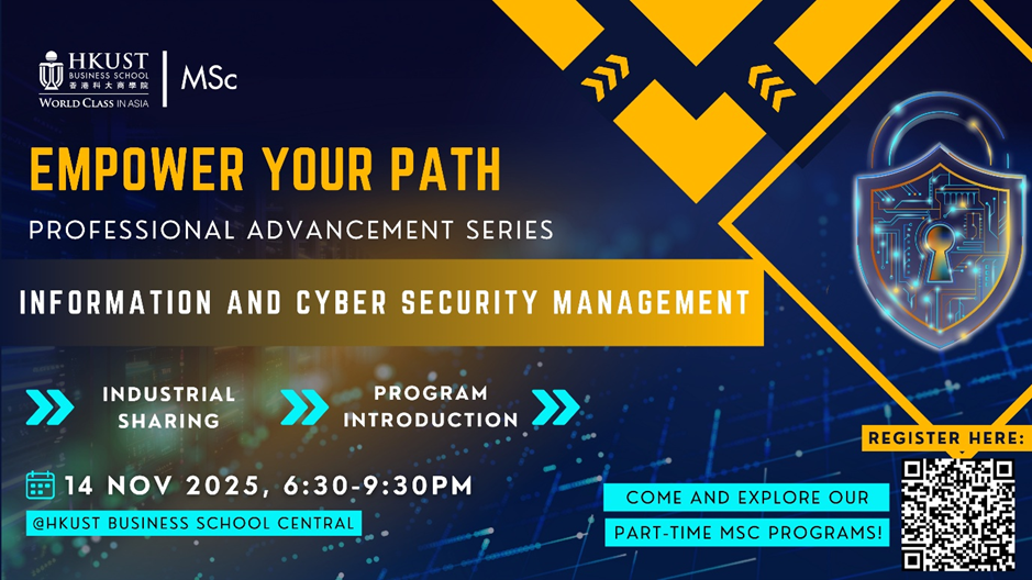 We are excited to have the “Empower Your Path: Professional Advancement Series” spotlight the MSc in Information and Cyber Security Management Program. This exclusive event will provide an in-depth look into how MScICSM part-time program equips professionals with advanced cyber security expertise combined with business thinking, to navigate this fast-growing industry.